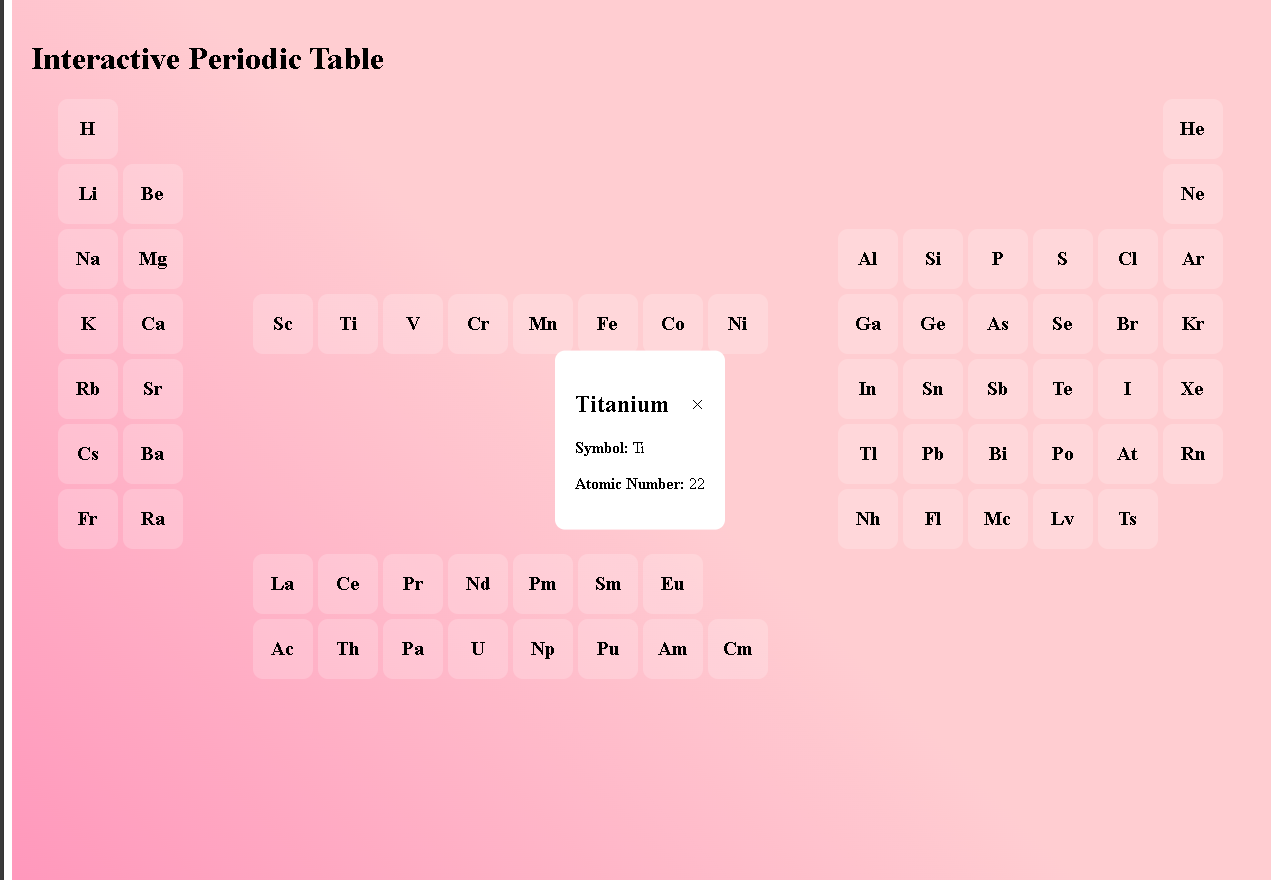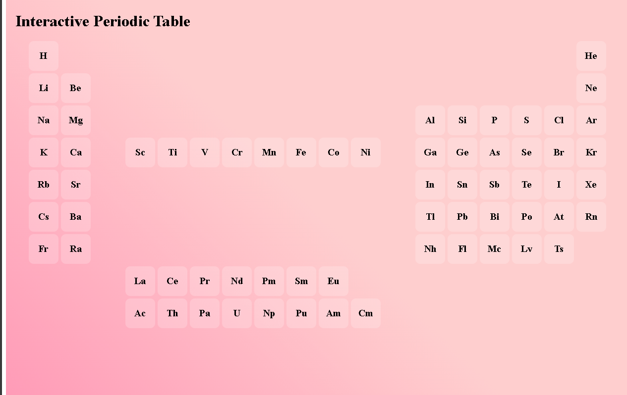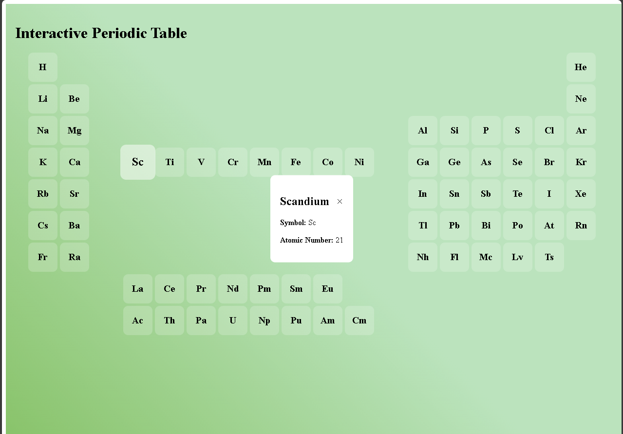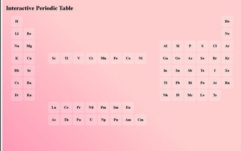 Dive into the elements like never before with our Interactive Periodic Table—a dynamic, visually engaging tool designed to make learning both exciting and effortless.